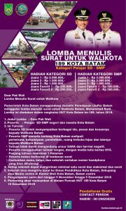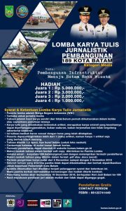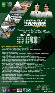 MARI IKUTI KEGIATAN LOMBA DALAM RANGKA HARI JADI KOTA BATAM KE 189 oleh mediacenter · Dipublikasikan 7 November 2018 · Di update 7 November 2018 Post Views: 1