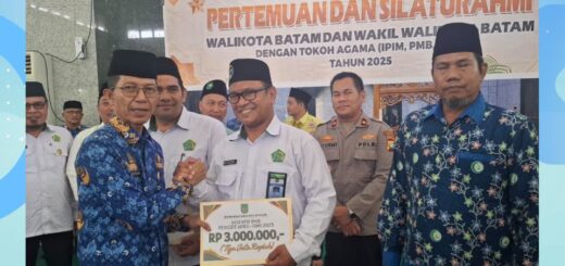 Media Center Batam – Jamaah masjid Nurul Ikhwan Perumahan Koperasi Sekawan Griya KPN Batamcenter menyambut kedatangan Wali Kota Batam Muhammad Rudi, Senin (25/4).