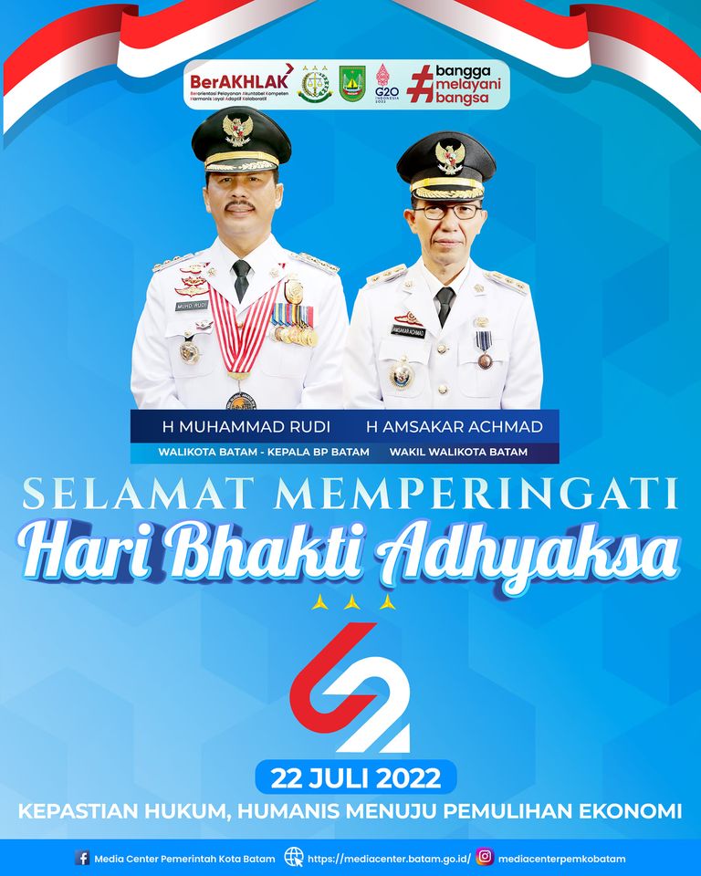 βMewakili Pemko Batam dan masyarakat Kota Batam, kami ucapkan Selamat Hari Bhakti Adhyaksa ke-62,β kata Rudi.