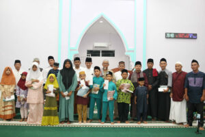 Momentum ini, Amsakar berkesempatan menunaikan Salat Isya berjamaah dengan masyarakat juga ikut menyerahkan santunan kepada anak yatim.