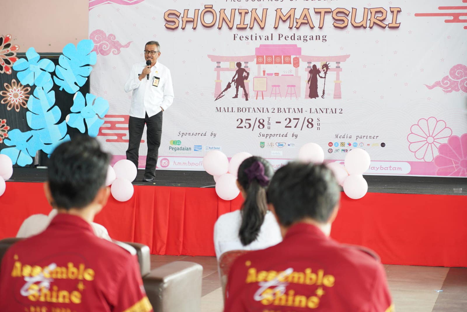MC Pemko Batam – Sekretaris Daerah Kota Batam, Jefridin, M.Pd. mewakili Wali Kota Batam, Muhammad Rudi membuka secara resmi The Journey Of Bazaar Shonin Matsuri Festival Pedagang di Mall Botania 2, Jumat (25/8/2023).