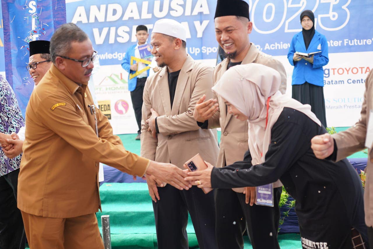 MC Pemko Batam – Wali Kota Batam, Muhammad Rudi diwakili Sekretaris Daerah Kota Batam, Jefridin, M.Pd. membuka secara resmi Andalusia Visit Day 2023 di Komplek Sekolah Islam Andalusia Kawasan Limindo Trade Center RT.001 RW.022, Kelurahan Taman Baloi, Senin (23/10/2023). Andalusia Visit Day digelar dalam rangka Hari Ulang Tahun (HUT) Sekolah Islam Andalusia yang ke-6 tahun. Harapannya, melalui kegiatan ini dapat memotivasi bagi peserta didik untuk mengembangkan bakat.