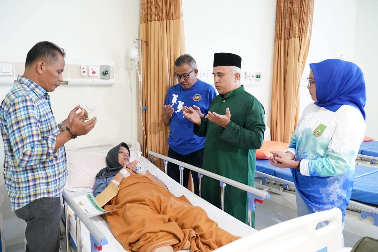 𝐃𝐢𝐬𝐤𝐨𝐦𝐢𝐧𝐟𝐨 𝐁𝐚𝐭𝐚𝐦- Sekretaris Daerah Kota Batam, Jefridin, M.Pd. menjenguk salah seorang pelatih Persaudaraan Setia Hati Terate (PSHT) Yuni Murdianingsih yang dirawat di Rumah Sakit Mutiara Aini, Minggu (5/11/2023). Jefridin yang didampingi istri, Hariyanti datang menjenguk bersama Badan Amil Zakat Nasional (Baznas) Kota Batam.