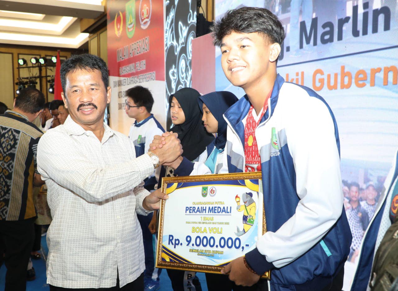 Hal tersebut disampaikan Rudi saat memberikan penghargaan kepada atlet, pelatih & manager berprestasi yang bertanding pada PORPROV V Kepri Tahun 2022 dan POPDA IX Kepri Tahun 2022 di Hotel Swissbell Harbourbay, Minggu (19/11/2023) malam.