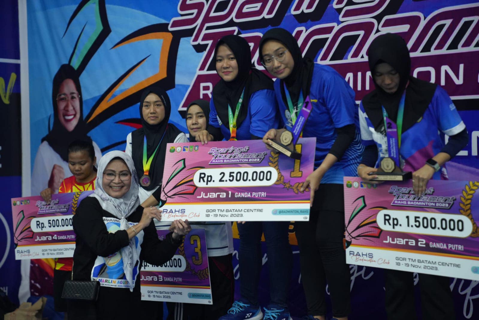 Sementara di tim putri pemenangnya secara berurut yakni Deta Megaratmi & Titian Ukhwah Imaniah (RAHS Badminton), Ayu Dwi Mulyani & Rani Rafitriyani (RAHS Badminton), Dahermiwati & Nina Herlina (PB Pemko Batam), dan Junita & Yasmine (PB Karang Taruna).