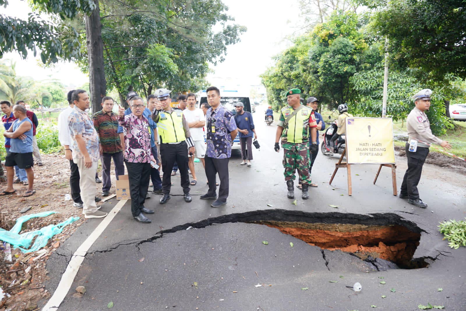 โPagi ini Saya ke sini untuk mengecek langsung. Hari ini akan Kita amankan dulu jalan ini agar tidak terjadi hal yang membahayakan bagi masyarakat yang melintas di jalan ini,โ ujar Jefridin.