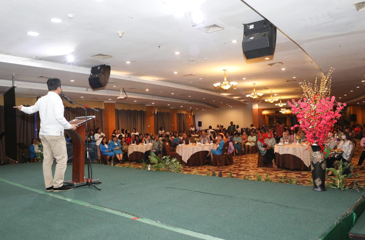 𝐃𝐢𝐬𝐤𝐨𝐦𝐢𝐧𝐟𝐨 𝐁𝐚𝐭𝐚𝐦 – Wali Kota Batam, Muhammad Rudi hadir secara langsung perayaan Natal & Pelantikan PAC Persatuan Wanita Kristen Indonesia (PWKI) se-Kota Batam Tahun 2023 di Hotel Golden View Bengkong, Jumat (24/11/2023).