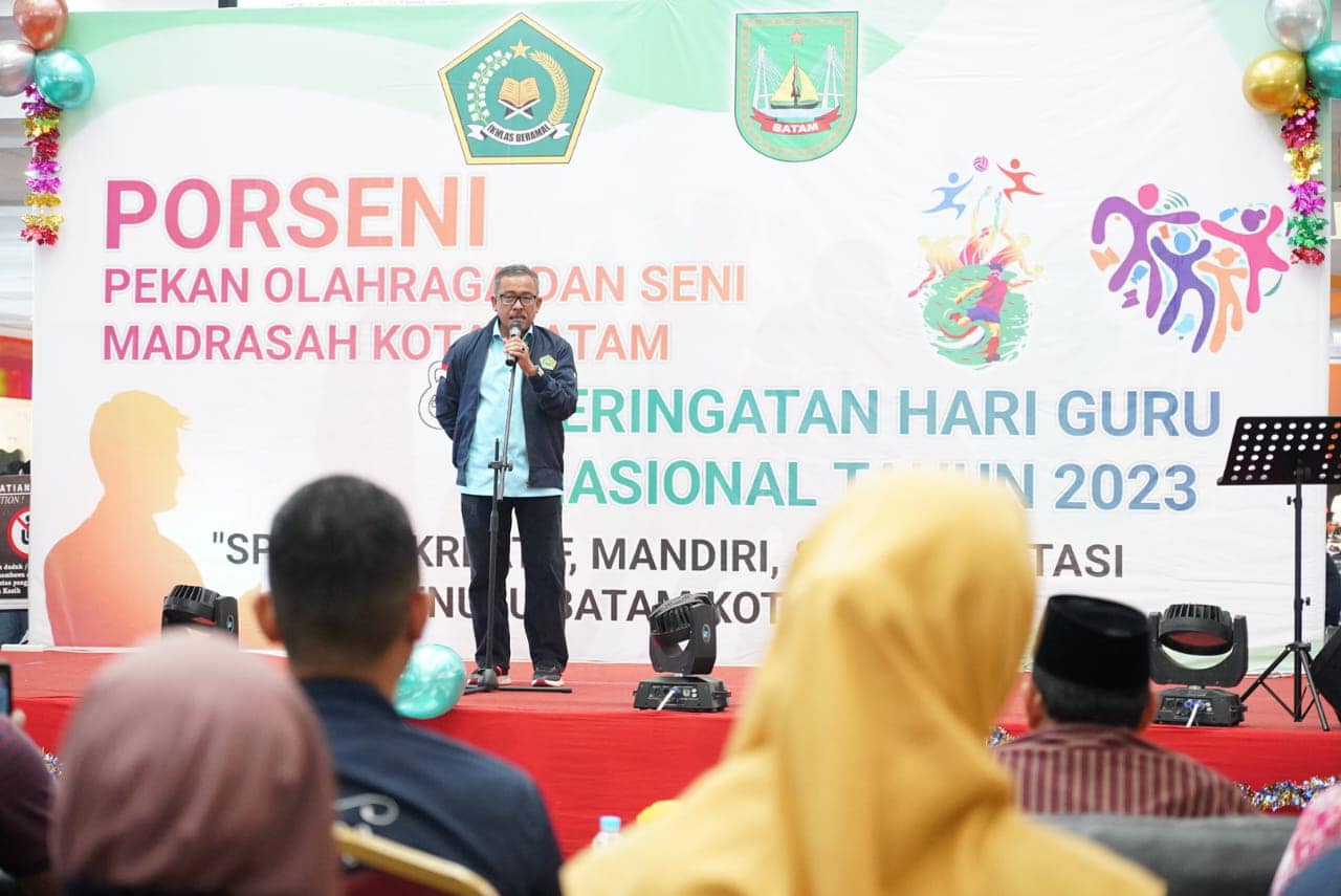 𝐃𝐢𝐬𝐤𝐨𝐦𝐢𝐧𝐟𝐨 𝐁𝐚𝐭𝐚𝐦 – Wali Kota Batam, Muhammad Rudi diwakili Sekretaris Daerah Kota Batam, Jefridin, M.Pd. menutup secara resmi Pekan Olahraga dan Seni (Porseni) Madrasah Tingkat Kota Batam Tahun 2023 dan Peringatan Hari Guru Nasional di Atrium Barat Mega Mall, Minggu (26/11/2023). Melalui kegiatan Porseni Madrasah ini diharapkan pelajar di Kota Batam dapat menyalurkan bakat yang dimiliki serta mengukir prestasi.
