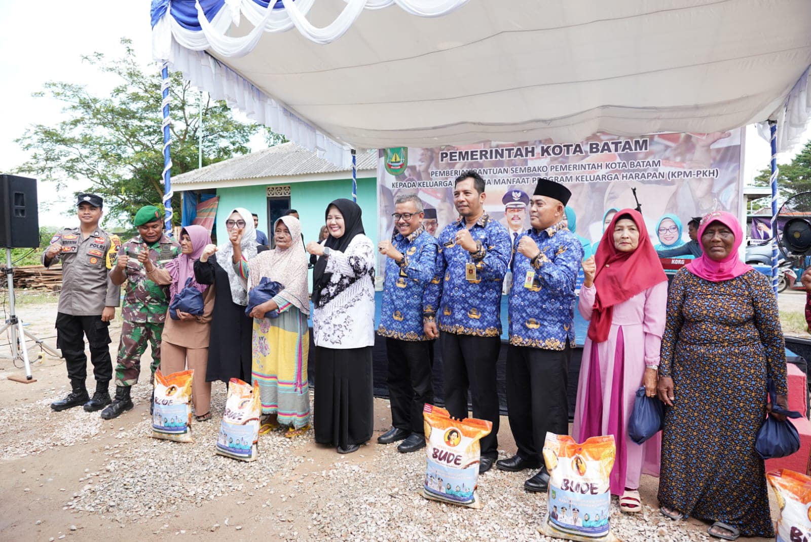 ๐๐ข๐ฌ๐ค๐จ๐ฆ๐ข๐ง๐๐จ ๐๐๐ญ๐๐ฆ – Wali Kota Batam, Muhammad Rudi diwakilkan Sekretaris Daerah Kota Batam, Jefridin, M. Pd. bersama Wakil Gubernur Kepri, Marlin Agustina membagikan bantuan Sembako kepada 317 Keluarga Penerima Manfaat (KPM) Program Keluarga Harapan (PKH) Kelurahan Setokok, di Kelong Slimmoza Setokok, pada Rabu (29/11/2023).
