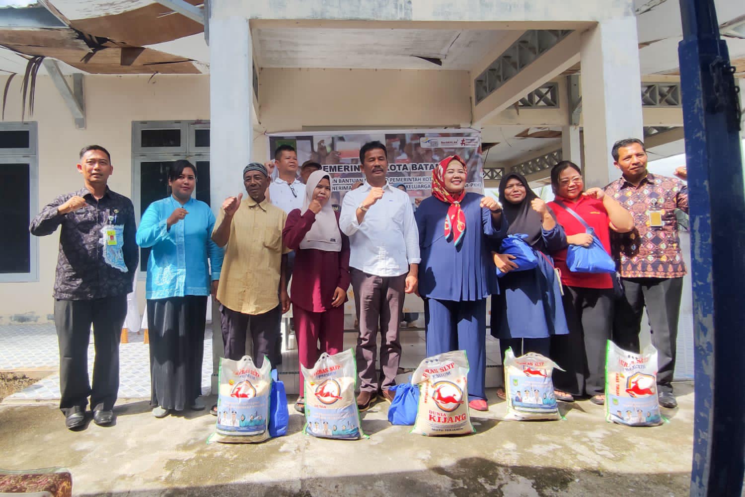 𝐃𝐢𝐬𝐤𝐨𝐦𝐢𝐧𝐟𝐨 𝐁𝐚𝐭𝐚𝐦 – Wali Kota Batam, Muhammad Rudi, bersama Wakil Gubernur Kepri, Marlin Agustina, menyerahkan bantuan sembako untuk Keluarga Penerima Manfaat (KPM) Program Keluarga Harapan (PKH) di hinterland, Kamis (30/11/2023).