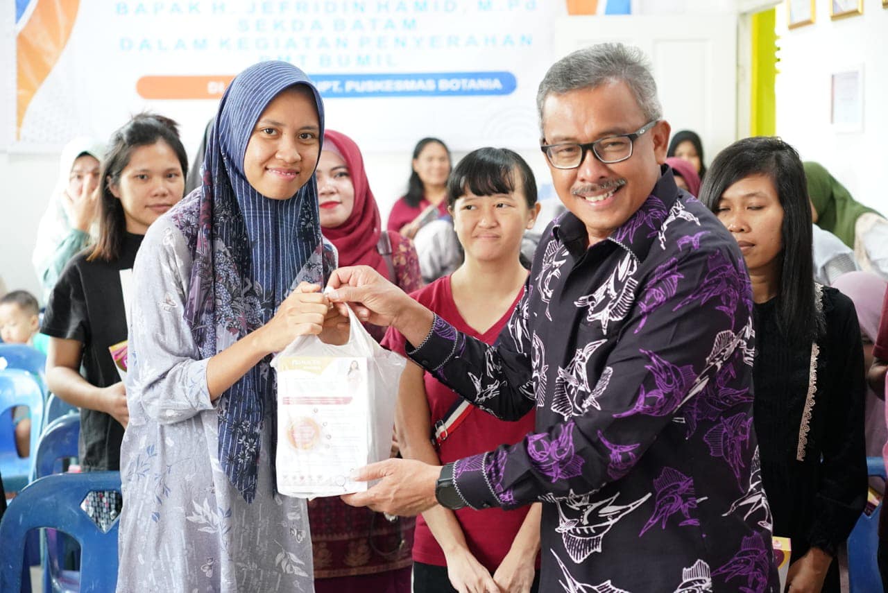 Agar tepat sasaran, Sekretaris Daerah Kota Batam, Jefridin, M. Pd. mewakili Wali Kota Batam, Muhammad Rudi menyerahkan secara langsung PMT Susu kepada 44 Ibu Hamil, di Puskesmas Botania, Jumat (15/12/2023). Nantinya, sebanyak 30 ribu PMT susu ibu hamil akan dibagikan untuk seribu ibu hamil yang ada di Kota Batam.