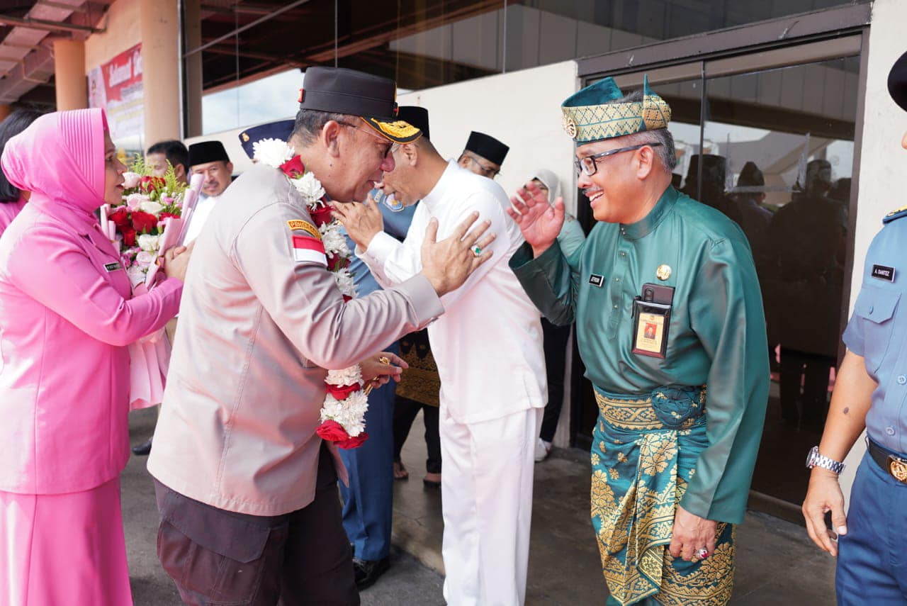 ๐๐ข๐ฌ๐ค๐จ๐ฆ๐ข๐ง๐๐จ ๐๐๐ญ๐๐ฆ – Sekretaris Daerah Kota Batam, Jefridin, M.Pd. mendampingi Wali Kota Batam, Muhammad Rudi menyambut kedatangan Kapolda Kepri, Brigjen Yan Fitri Halimansyah di Bandara Hang Nadim, Senin (18/12/2023). Ketibaan Yan Fitri disambut dengan prosesi melayu yakni tepuk tepung tawar oleh Lembaga Adat Melayu (LAM). Yan Fitri juga dikalungi bunga sebagai ucapan selamat datang di Kota Batam Provinsi Kepri.