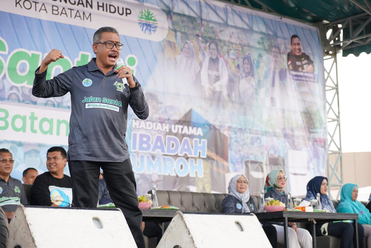 𝐃𝐢𝐬𝐤𝐨𝐦𝐢𝐧𝐟𝐨 𝐁𝐚𝐭𝐚𝐦 – Wali Kota Batam, Muhammad Rudi diwakili Sekretaris Daerah Kota Batam, Jefridin, M.Pd. melepas peserta Jalan Santai Hijau di Lapangan Cipta Grand City (CGC) Sagulung, Sabtu (30/12/2023). Kegiatan yang ditaja Dinas Lingkungan Hidup (DLH) Kota Batam ini diikuti oleh pejuang pilah sampah dan pengelola unit Bank Sampah di Kota Batam.