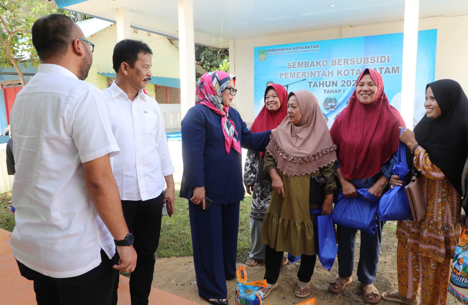 𝐃𝐢𝐬𝐤𝐨𝐦𝐢𝐧𝐟𝐨 𝐁𝐚𝐭𝐚𝐦 – Wali Kota Batam, Muhammad Rudi, membagikan 4.800 paket sembako subsidi untuk masyarakat Batu Ampar, Rabu (17/1/2024). Pembagian sembako itu dihadiri Wakil Gubernur Kepri, Marlin Agustina.