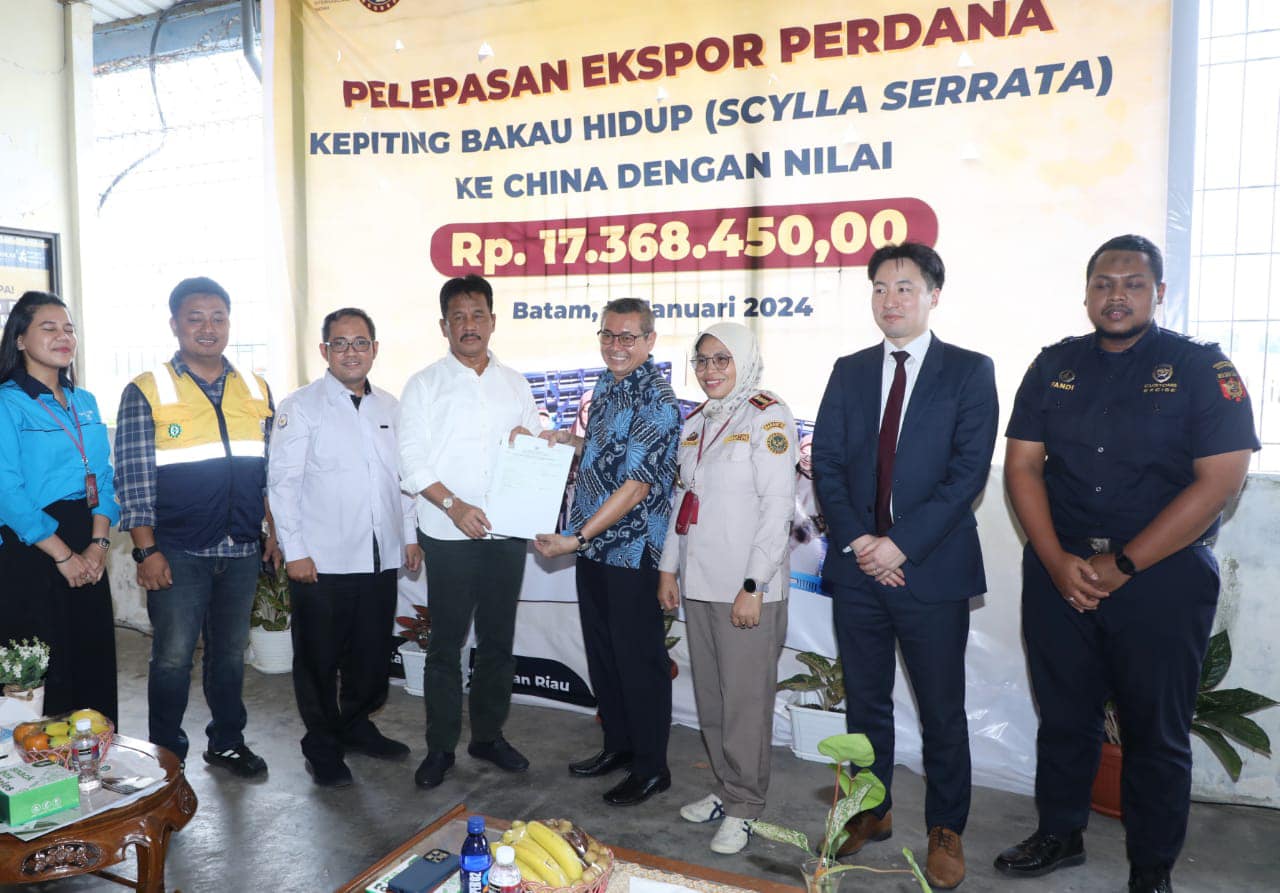 Untuk diketahui, ekspor perdana kepiting bakau hidup dari Batam ke China tersebut senilai Rp 17.368.450.