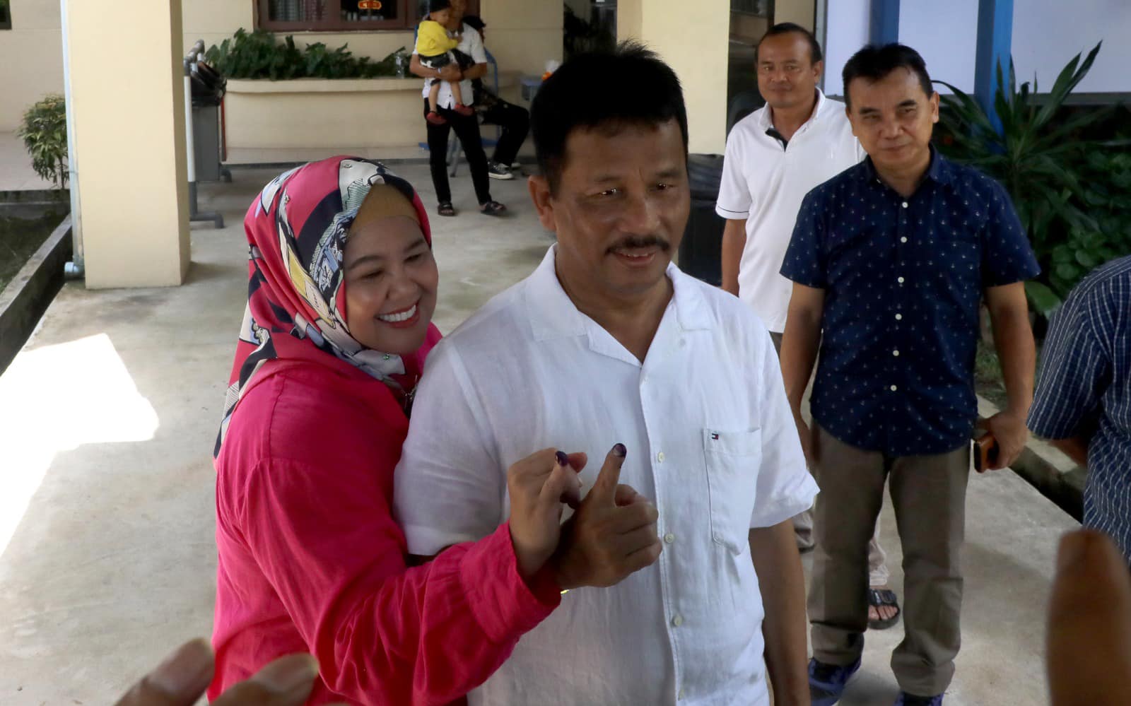 𝐃𝐢𝐬𝐤𝐨𝐦𝐢𝐧𝐟𝐨 𝐁𝐚𝐭𝐚𝐦 – Wali Kota Batam, Muhammad Rudi, bersama Wakil Gubernur Kepri, Marlin Agustina, menyalurkan hak suara pada Pemilihan Umum (Pemilu) 2024 di TPS 33 Kompleks Rosdale, Teluk Tering, Batam Kota, Rabu (14/2/2024).