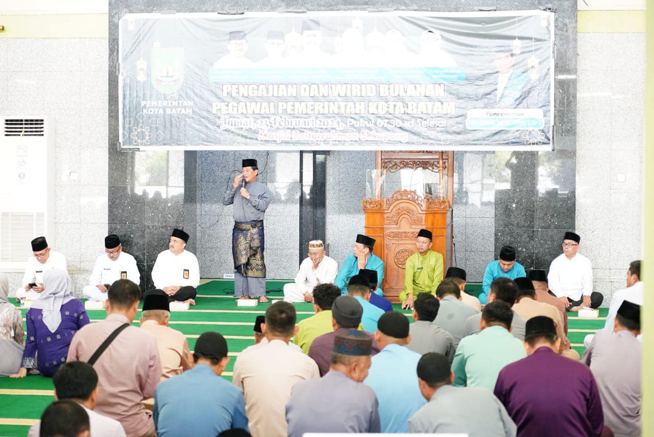𝐃𝐢𝐬𝐤𝐨𝐦𝐢𝐧𝐟𝐨 𝐁𝐚𝐭𝐚𝐦- Pemerintah Kota (Pemko) Batam menyelenggarakan Wirid Pengajian Bulanan Pegawai Pemko Batam di Masjid Baiturrahman Sekupang, Jumat (23/03/2024). Wirid pengajian bulanan ini diikuti ASN di lingkungan Pemko Batam, dan turut dihadiri Sekretaris Daerah Kota Batam, Jefridin, M.Pd. Menjelang bulan suci ramadhan 1445 Hijriah, Ia menyampaikan permohonan maaf kepada seluruh ASN di lingkungan Pemko Batam. Selama bulan Ramadhan, Ia mengajak agar ASN dapat menjalankan ibadah dengan baik dan khusyuk.