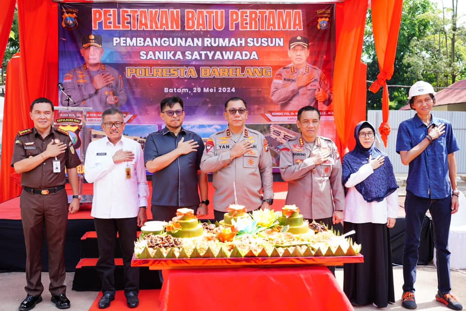 𝐃𝐢𝐬𝐤𝐨𝐦𝐢𝐧𝐟𝐨 𝐁𝐚𝐭𝐚𝐦- Wali Kota Batam, Muhammad Rudi diwakili Sekretaris Daerah Kota Batam, Jefridin, M.Pd. melakukan Peletakan Batu Pertama Pembangunan Rusun (Rusun) Sanika Satyawada Polresta Barelang di Lapangan Tembak Polresta Barelang, Rabu (29/05/2024).