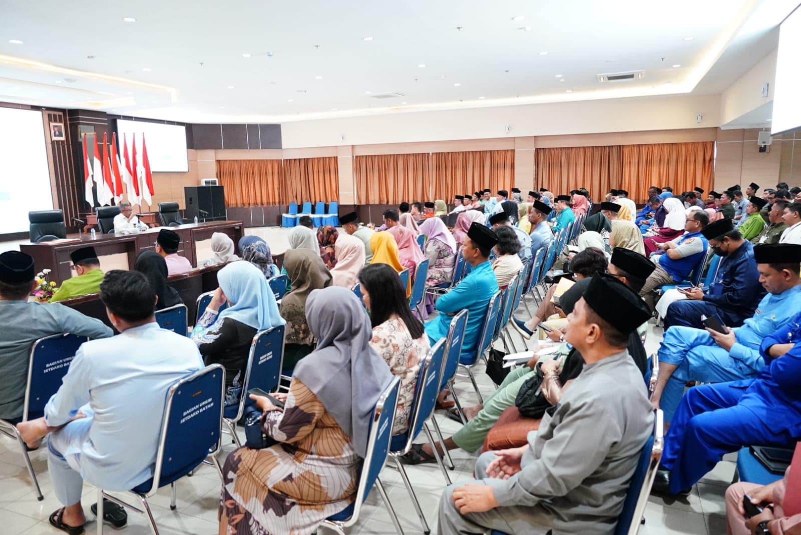 𝐃𝐢𝐬𝐤𝐨𝐦𝐢𝐧𝐟𝐨 𝐁𝐚𝐭𝐚𝐦- Wali Kota Batam, Muhammad Rudi diwakili Sekretaris Daerah Kota Batam, Jefridin, M.Pd. memimpin rapat koordinasi Penyusunan Rancangan Perubahan Kebijakan Umum Anggaran (KUA) Tahun Anggaran 2024 dan Rancangan KUA Tahun Anggarann 2025 di Aula Engku Hamidah Lantai IV Kantor Walikota, Jumat (21/06/2024). Rapat koordinasi diikuti Pimpinan Perangkat Daerah, Sekretaris, Kasubag Program/Perencana dan Pengurus Barang di lingkungan Pemerintah Kota Batam.
