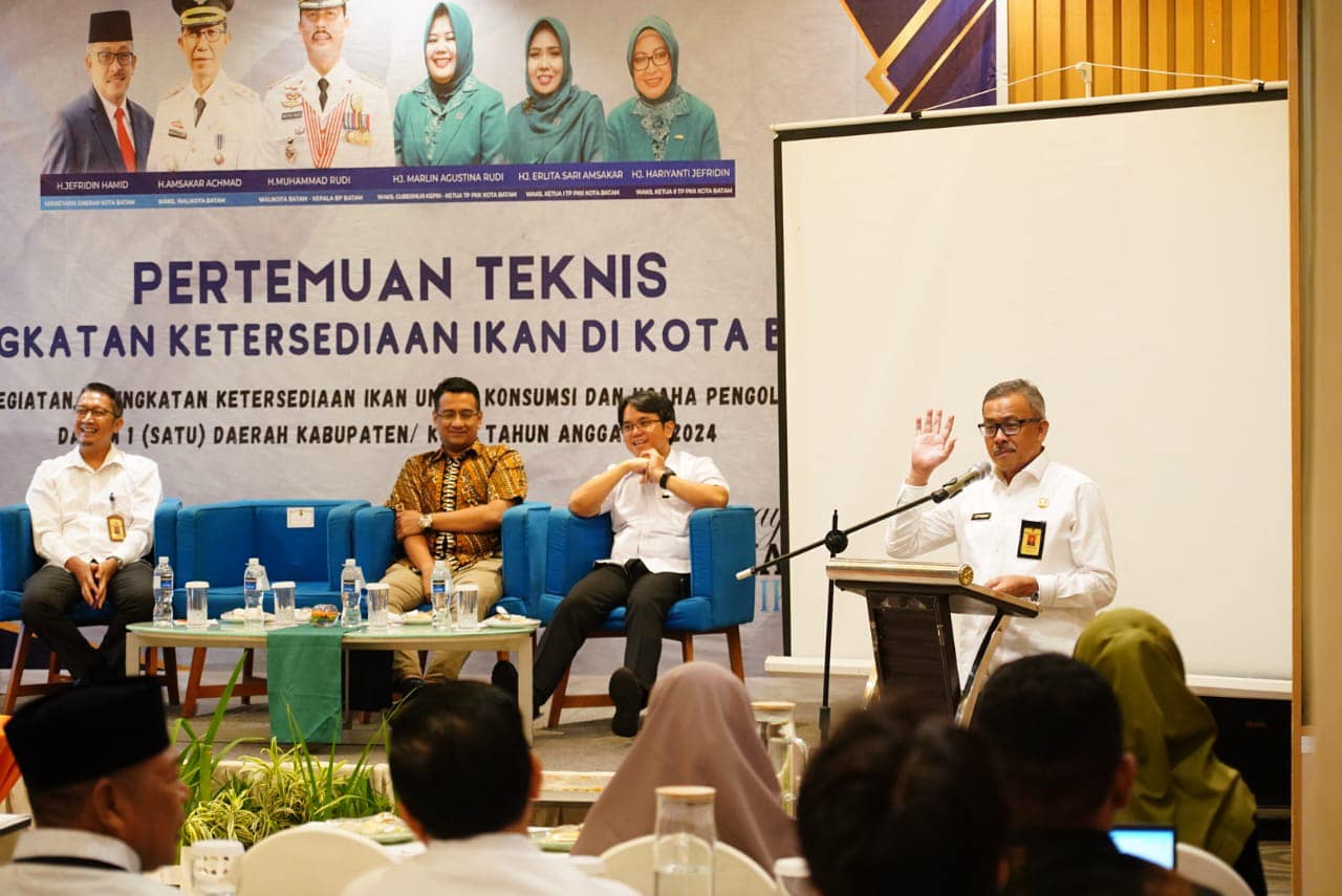 ๐๐ข๐ฌ๐ค๐จ๐ฆ๐ข๐ง๐๐จ ๐๐๐ญ๐๐ฆ- Dalam rangka meningkatkan ketersediaan ikan di Kota Batam, Dinas Perikanan Kota Batam menyelenggarakan Pertemuan Teknis Peningkatan Ketersediaan Ikan di Kota Batam, di Hotel Harris Batam Centre, Rabu (10/07/2024). Jika dilihat dari Angka Konsumsi Ikan (AKI) tahun 2023 yang 54,80 Kg/kapita/tahun dengan jumlah penduduk Kota Batam 1.256.610 jiwa maka kebutuhan ikan di Kota Batam sebanyak 68.862,23 Ton.