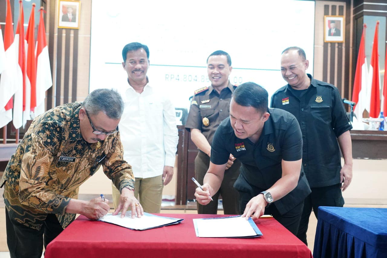 𝐃𝐢𝐬𝐤𝐨𝐦𝐢𝐧𝐟𝐨 𝐁𝐚𝐭𝐚𝐦- Pemerintah Kota Batam menerima Uang Pengganti Hasil Lelang Barang Rampasan Perkara Tindak Pidana Korupsi atas nama terpidana Mohammad Nashihan dari Kejaksaan Tinggi dan Badan Pemulihan Aset Kejaksaan Republik Indonesia. Secara simbolis Uang Pengganti Hasil Lelang Barang Rampasan Perkara Tindak Pidana Korupsi sebesar Rp4.804.861.000,- diserahkan Kepala Kejaksaan Negeri Batam, I Ketut Kasna Dedi kepada Wali Kota Batam, Muhammad Rudi.