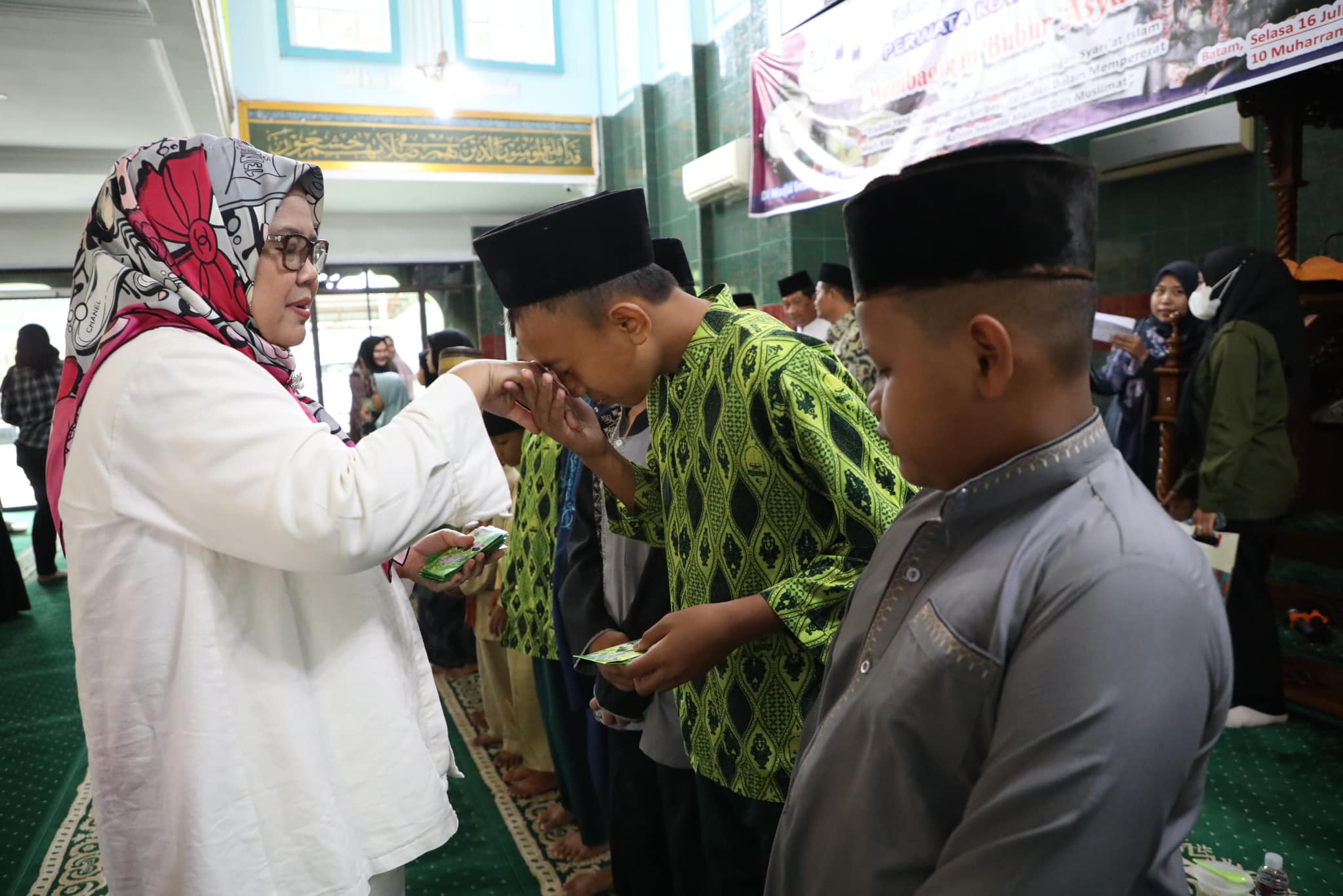 𝐃𝐢𝐬𝐤𝐨𝐦𝐢𝐧𝐟𝐨 𝐁𝐚𝐭𝐚𝐦– Wakil Gubernur Kepulauan Riau sekaligus Ketua Tim Penggerak Pemberdayaan Kesejahteraan Keluarga (TP PKK) Kota Batam, Marlin Agustina menghadiri Tabligh Akbar Dalam Rangka Memperingati Tahun Baru Islam di Masjid Besar Darul Iksan, Kelurahan Tanjung Sengkuang, Kecamatan Batu Ampar, Selasa (16/7/2024).