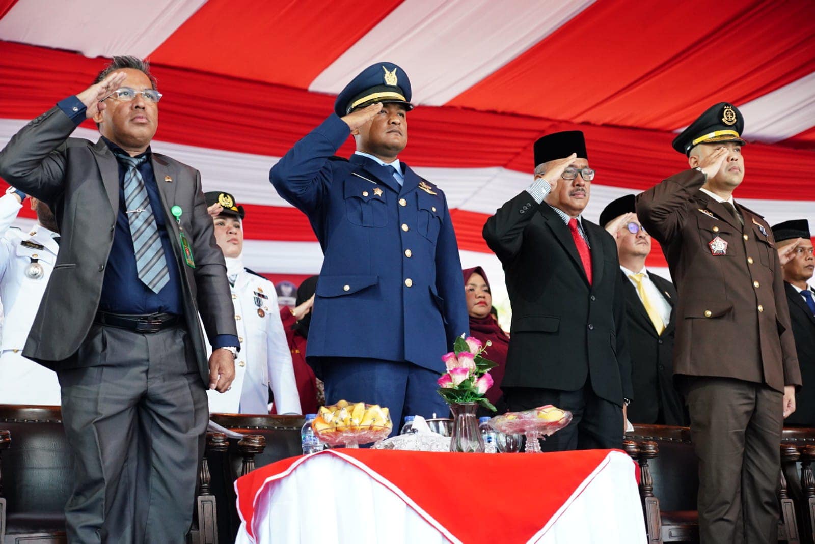 Upacara penurunan Bendera Merah Putih sore itu dimulai pukul 17.00 Wib. Wakil Wali Kota Batam, Amsakar Achmad bertindak sebagai Inspektur Upacara. Perwira Upacara AKP Asril selaku PS Kabagren Polresta Barelang, Komandan upacara Ipda Muhammad Rizky Fitrianor selaku PS. Kanit Reskrim Polsek KKP Polresta Barelang.