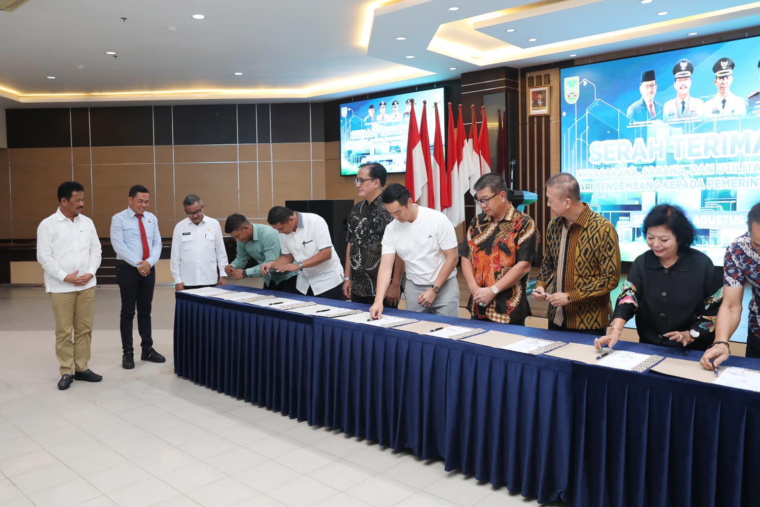 Penyerahan ditandai dengan penandatanganan Akta Notaris Pelepasan Hak Lahan PSU Perumahan oleh 11 direktur pengembang.