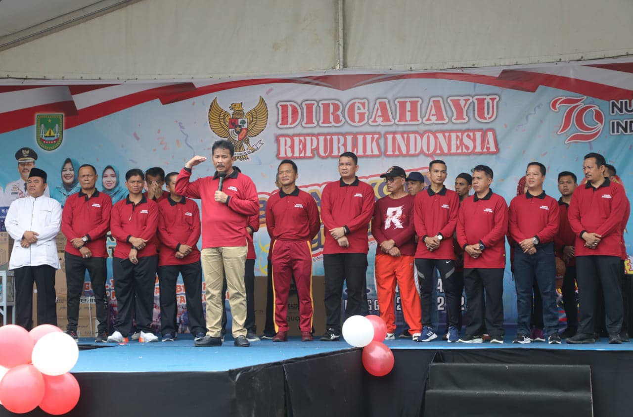 Rudi sengaja datang untuk bergembira bersama warga dalam mengisi momen kemerdekaan Indonesia tersebut.