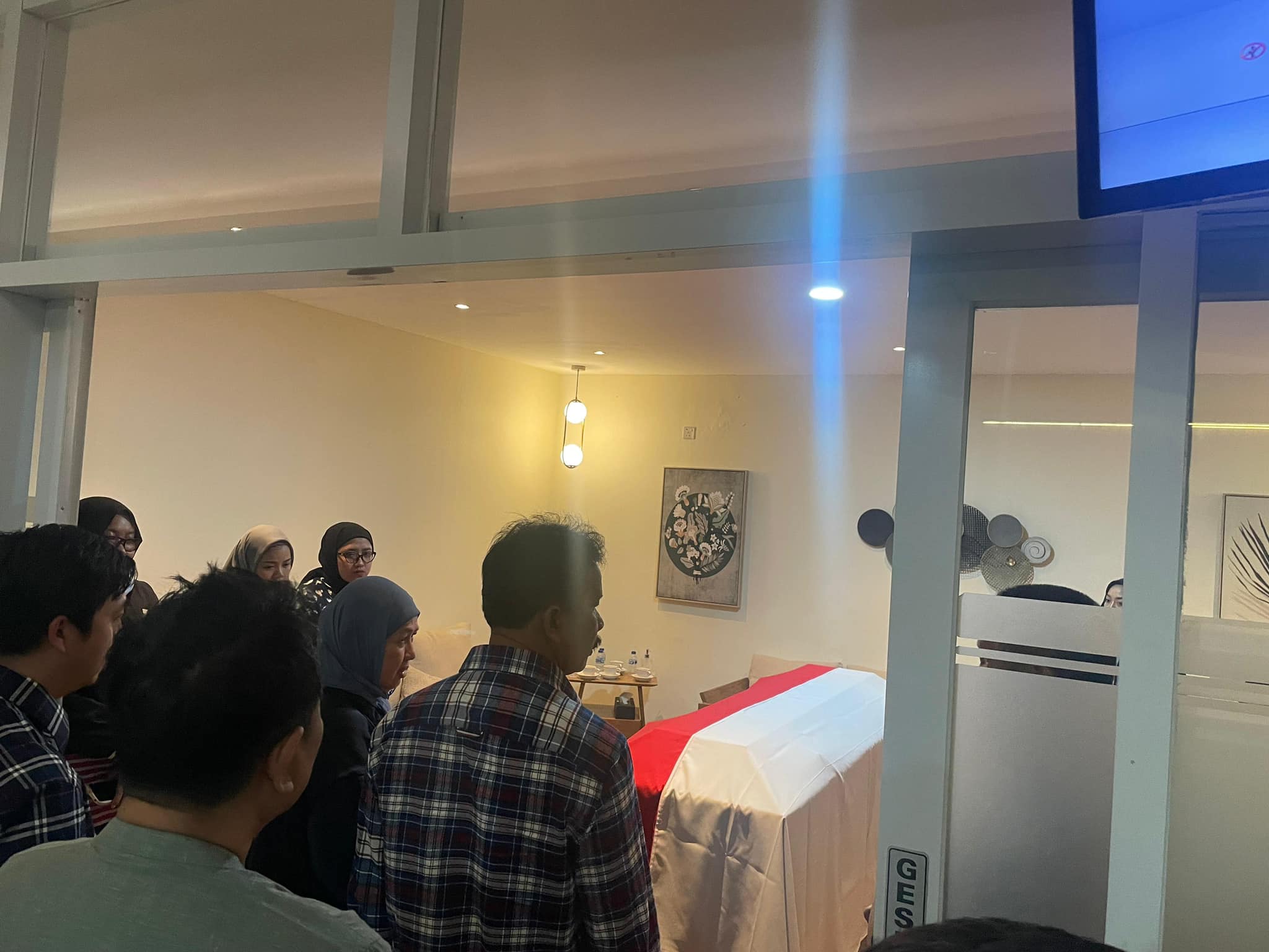 Rudi pun bergegas ke Jakarta hingga sempat bertemu keluarga almarhum di Gateway Human Remains Gedung Duty Free Area Cargo Bandara Soekarno-Hatta.