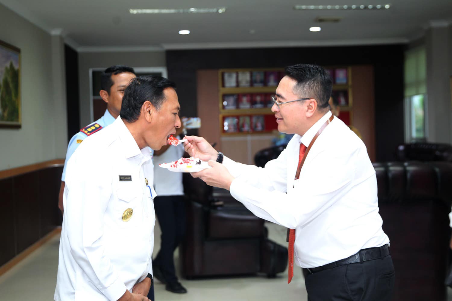 Ia bersama sejumlah anggota Forkopimda Batam mengantarkan langsung kue ulang tahun untuk Ketua PN Batam.