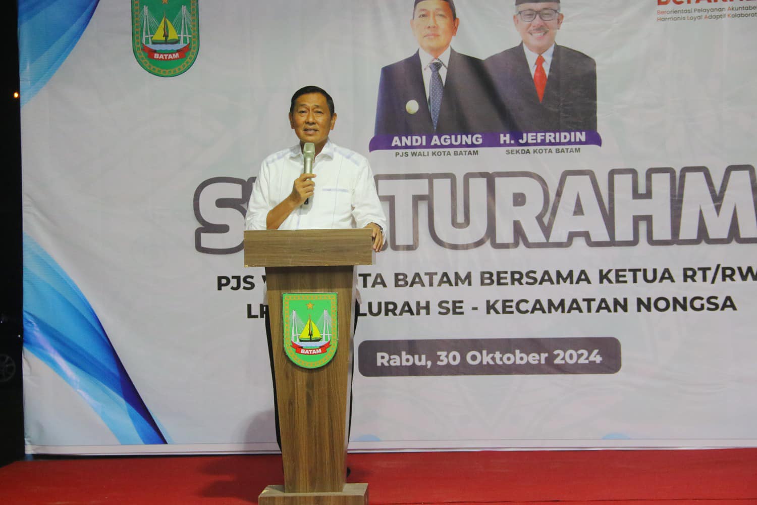 ๐๐ข๐ฌ๐ค๐จ๐ฆ๐ข๐ง๐๐จ ๐๐๐ญ๐๐ฆ โ Penjabat Sementara (Pjs) Wali Kota Batam, Andi Agung, menyapa masyarakat Kecamatan Nongsa melalui silaturahmi dengan Ketua Rukun Tetangga (RT), Rukun Warga (RW), Lembaga Pemberdayaan Masyarakat (LPM), serta Lurah se-Kecamatan Nongsa di Halaman Kantor Camat Nongsa, Rabu (30/10/2024).