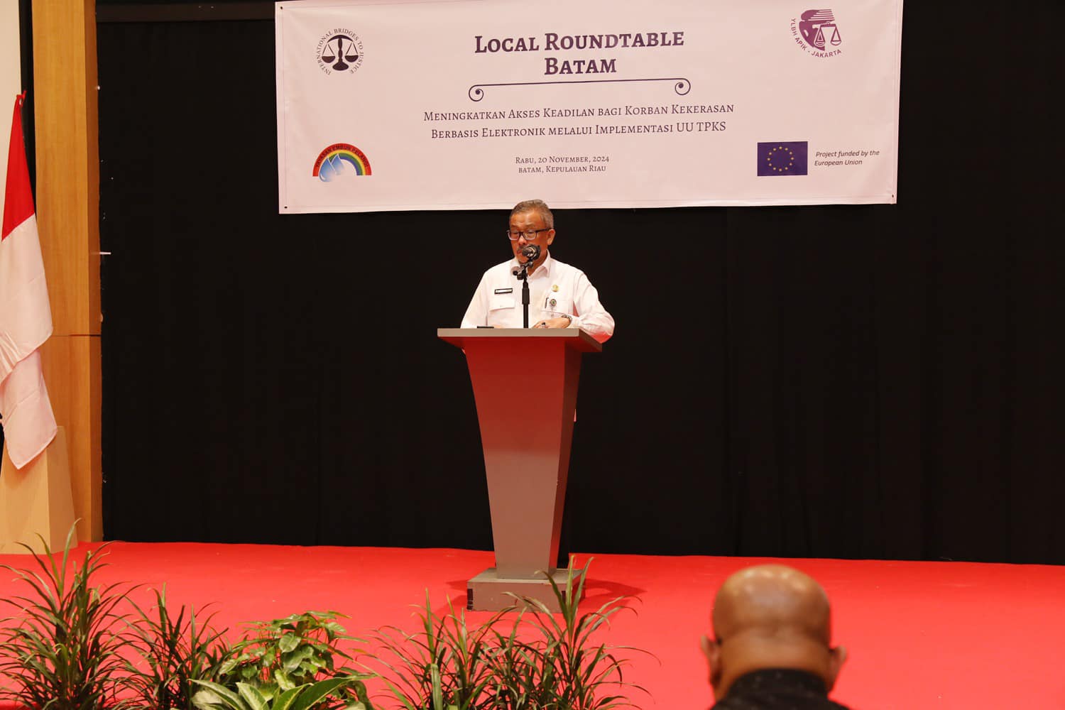 ๐๐ข๐ฌ๐ค๐จ๐ฆ๐ข๐ง๐๐จ ๐๐๐ญ๐๐ฆ-Sekretaris Daerah Kota Batam, Jefridin, M.Pd., secara resmi membuka acara Local Roundtable yang mengangkat tema Meningkatkan Akses Keadilan bagi Korban Kekerasan Berbasis Elektronik melalui Implementasi Undang-Undang Tindak Pidana Kekerasan Seksual (UU TPKS), di The Hills Hotel, Rabu (20/11/2024).