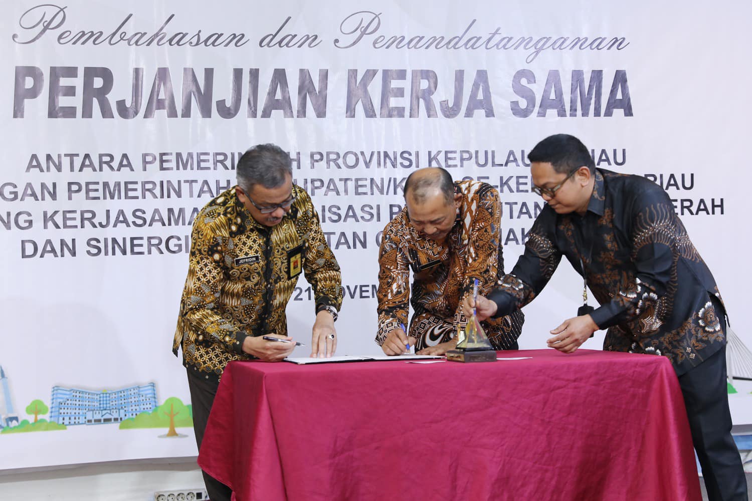 Penandatanganan dilakukan oleh Sekretaris Daerah (Sekda) Pemprov Kepri dan Sekda kabupaten/kota, termasuk Sekda Kota Batam, Jefridin, M.Pd.