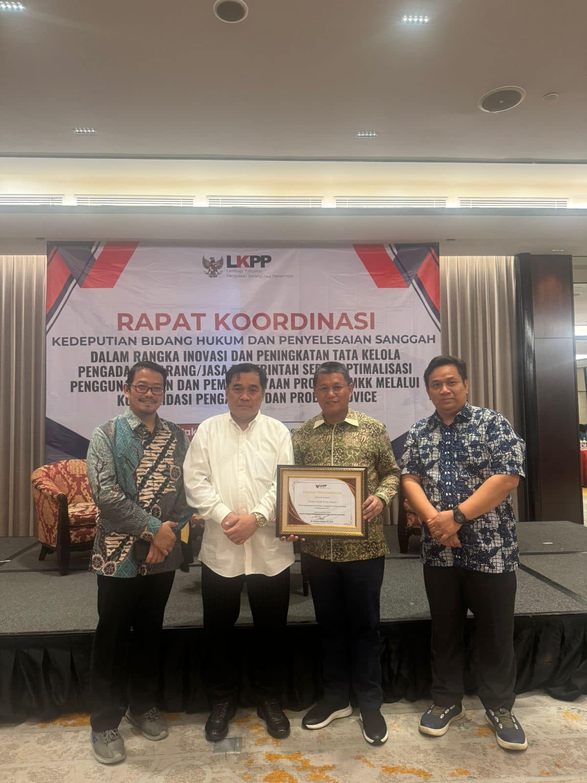 Penghargaan ini diserahkan Lembaga Kebijakan Pengadaan Barang/Jasa Pemerintah Republik Indonesia (LKPP RI) pada acara Rapat Koordinasi Kedeputian Bidang Hukum dan Penyelesaian Sanggah terkait Inovasi dan Peningkatan Tata Kelola Pengadaan Barang/Jasa Pemerintah serta Optimalisasi Penggunaan PDN dan Pemberdayaan Produk UMKK melalui Konsolidasi Pengadaan dan Probity Advice, bertempat di Hotel Grand Melia Jakarta, Senin, (9/12/2024).