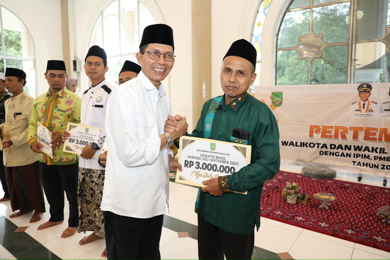 Diskominfo Batam – Wali Kota Batam, Amsakar Achmad, menyerahkan secara simbolis insentif bagi tokoh agama yang tergabung dalam Ikatan Persaudaraan Imam Masjid (IPIM), Persatuan Mubaligh Batam (PMB), dan Badan Musyawarah Guru Al-Qur’an (BMGQ) periode III tahun 2025.