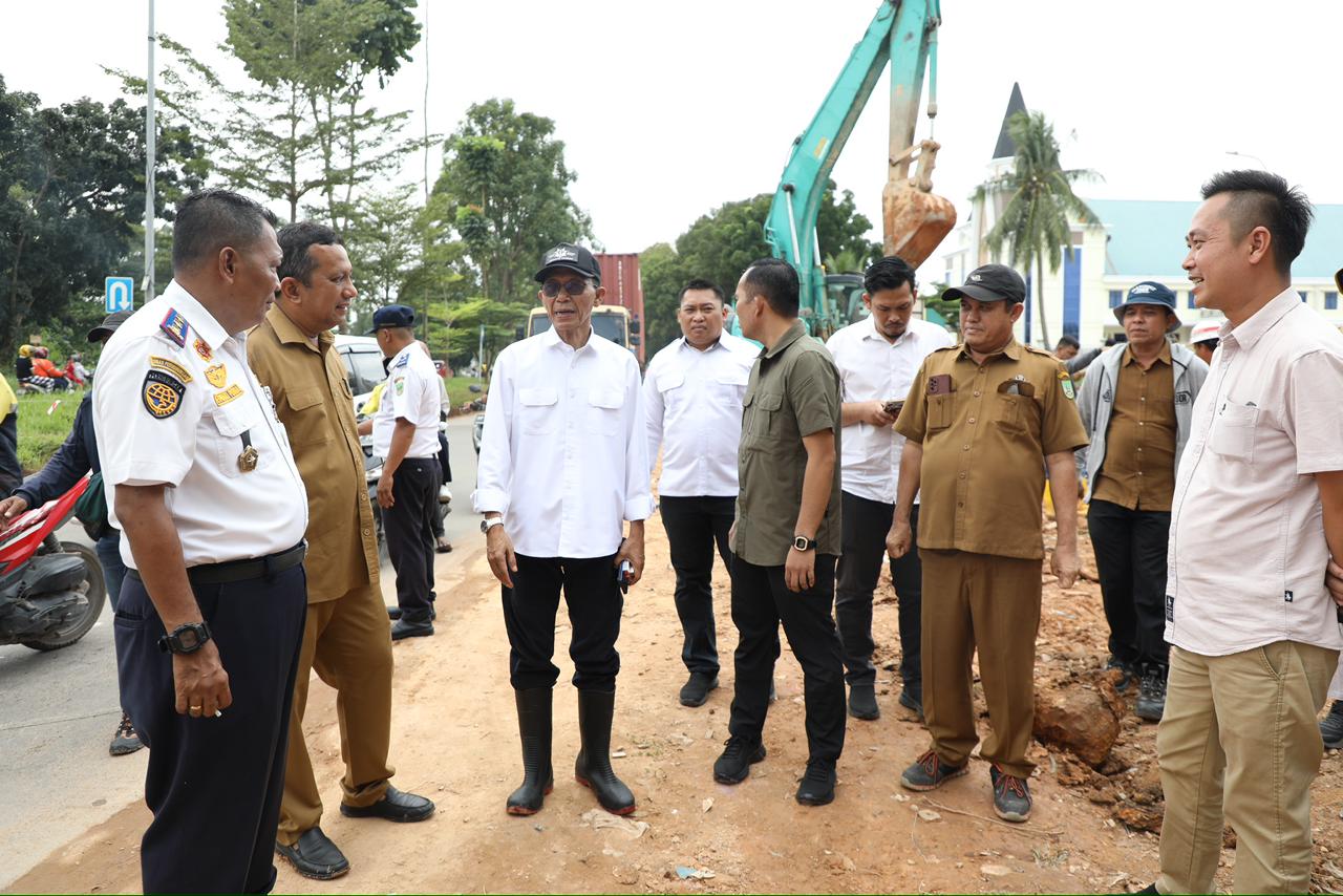 Diskominfo Batam – Wali Kota Batam, Amsakar Achmad, meninjau langsung pengerjaan box culvert dan peningkatan jalan di Simpang Helm, Jalan Raja Isa, Batamcenter, Senin (13/10/2025).