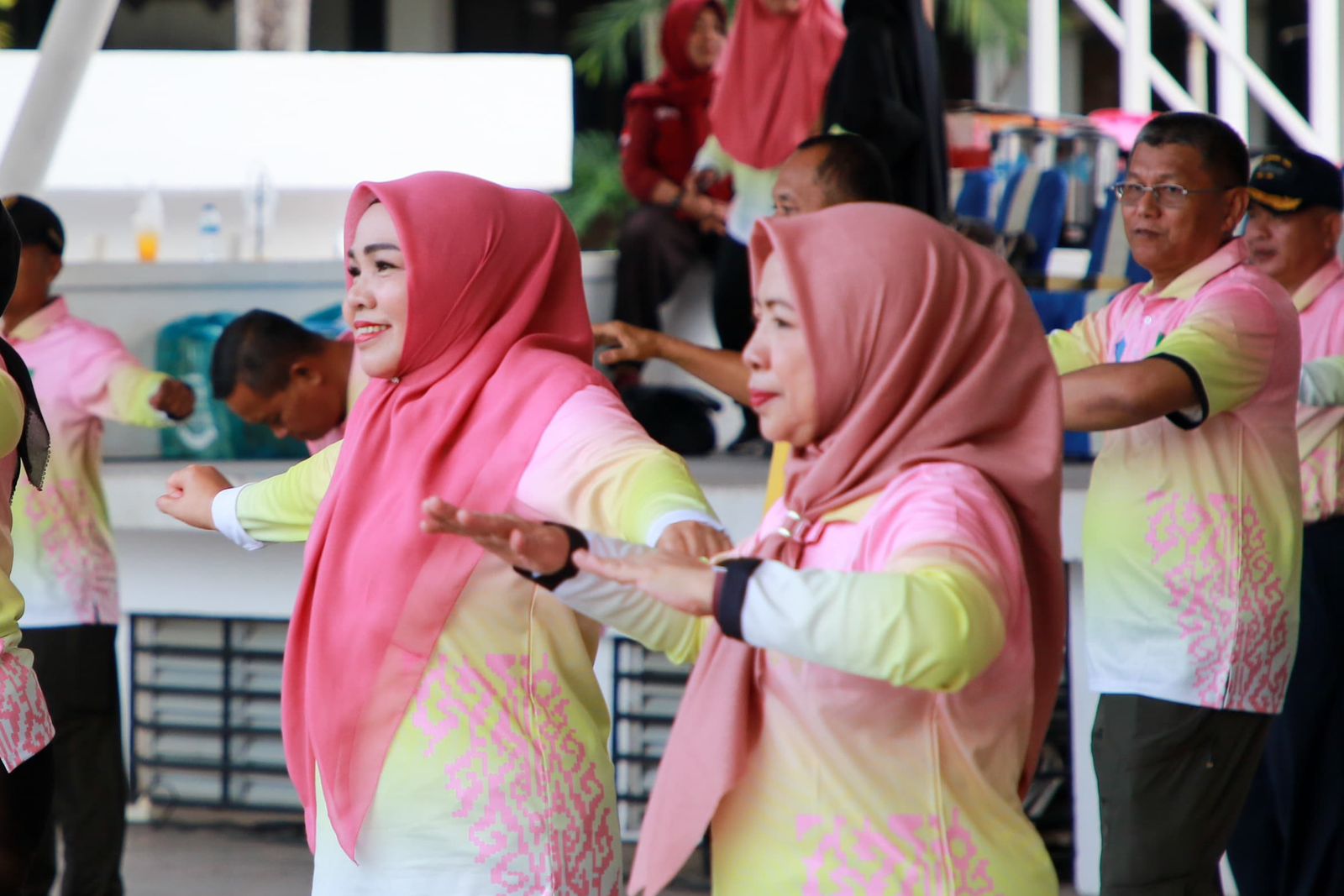 Ikut berbaur dan senam bersama peserta, Ketua TP-PKK Kota Batam, Erlita Amsakar, Sekretaris Daerah (Sekda) Batam, Firmansyah, dan sejumlah pejabat lainnya.