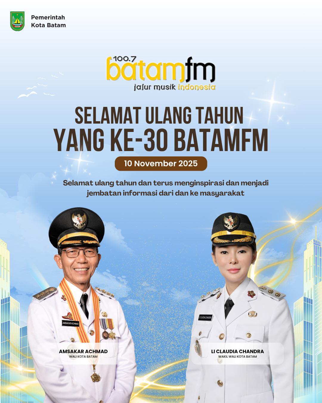 Atas nama Pemerintah Kota Batam, kami mengucapkan selamat ulang tahun ke-30 untuk Batam FM.