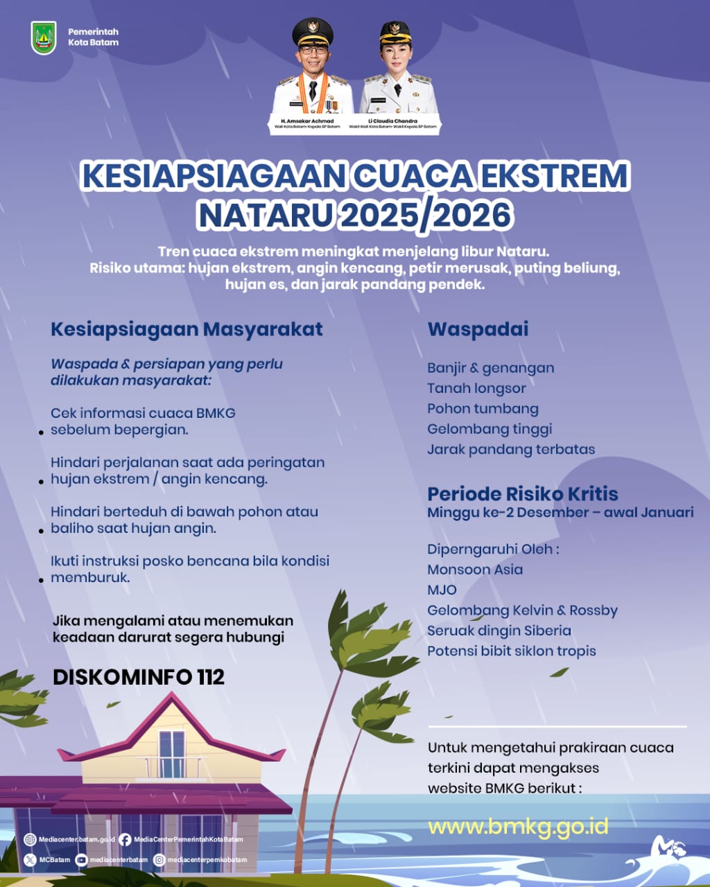 #Batam #DiskominfoBatam #KesiapsiagaanCuaca #InfoBMKG #Nataru2025 #MediaCenterBatam #BatamWaspadaCuacaEkstrem #AyoSiaga
