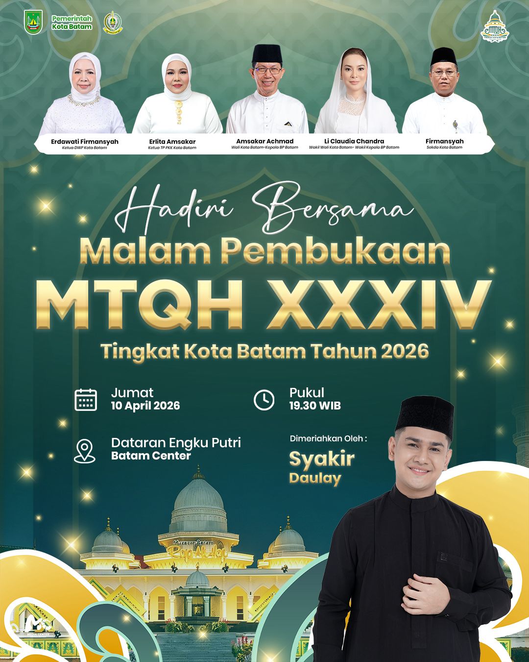Semarak MTQH XXXIV Kota Batam 2026, Syakir Daulay Siap Meriahkan Malam Pembukaan