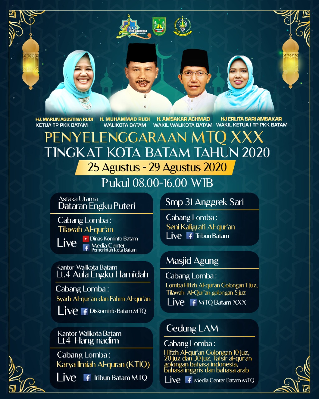 Berita / Kabar Media Center 25 Agustus 2020 oleh mediacenter · Published 25 Agustus 2020 Saksikan MTQ XXX Dalam Lima Siaran Langsung Media Center Batam – Rangkaian perlombaan atau kegiatan acara Musabaqah Tilawatil Quran (MTQ) ke XXX tingkat Kota Batam...