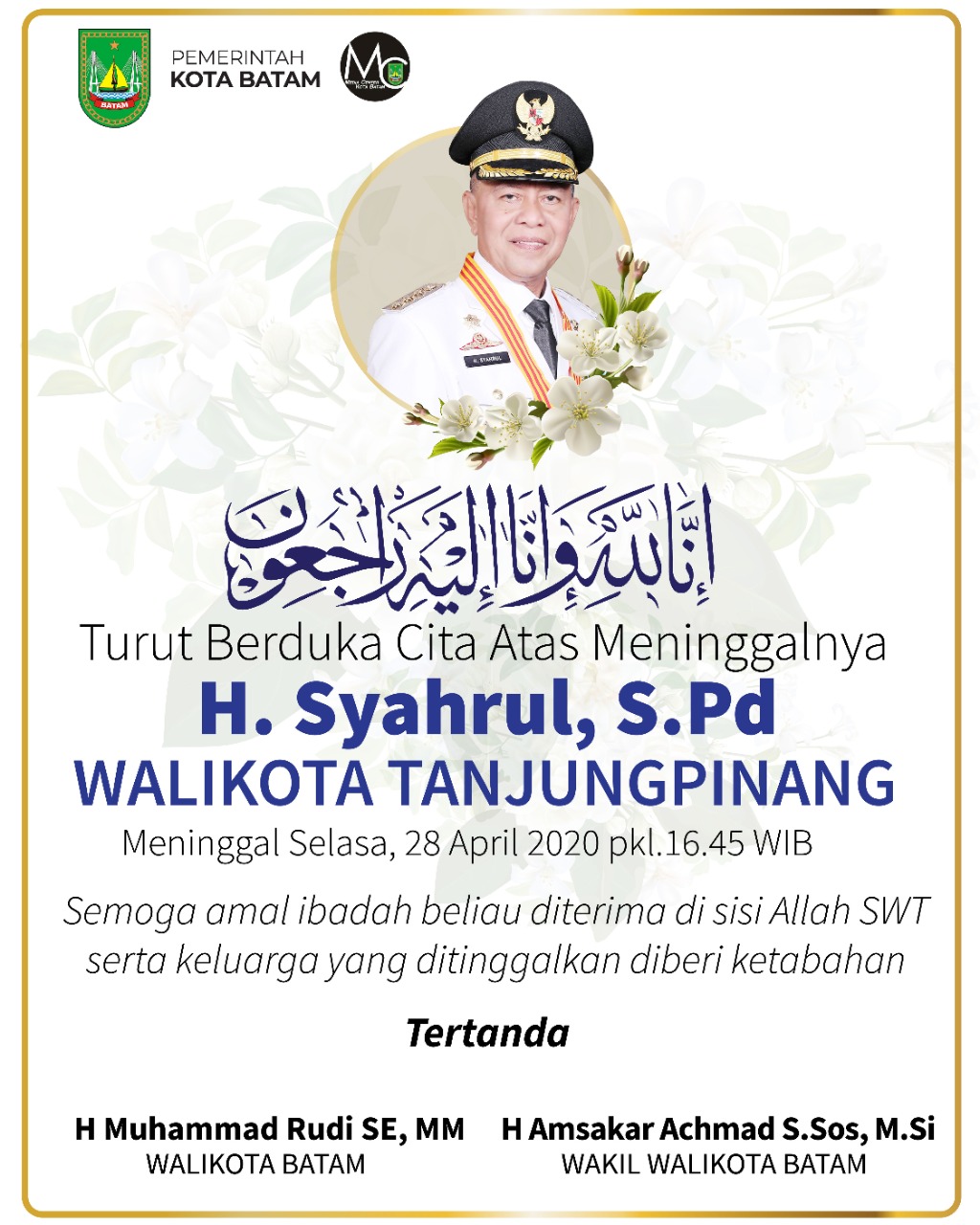 Berita / Walikota 28 April 2020 oleh mediacenter · Published 28 April 2020 Wali Kota Tanjung Pinang Tutup Usia, Rudi Ucapkan Bela Sungkawa Media Center Batam – Innalillahi wa inna ilaihi raji’un, kabar duka menyelimuti masyarakat Kota Tanjung Pinang, Kepulauan Riau....