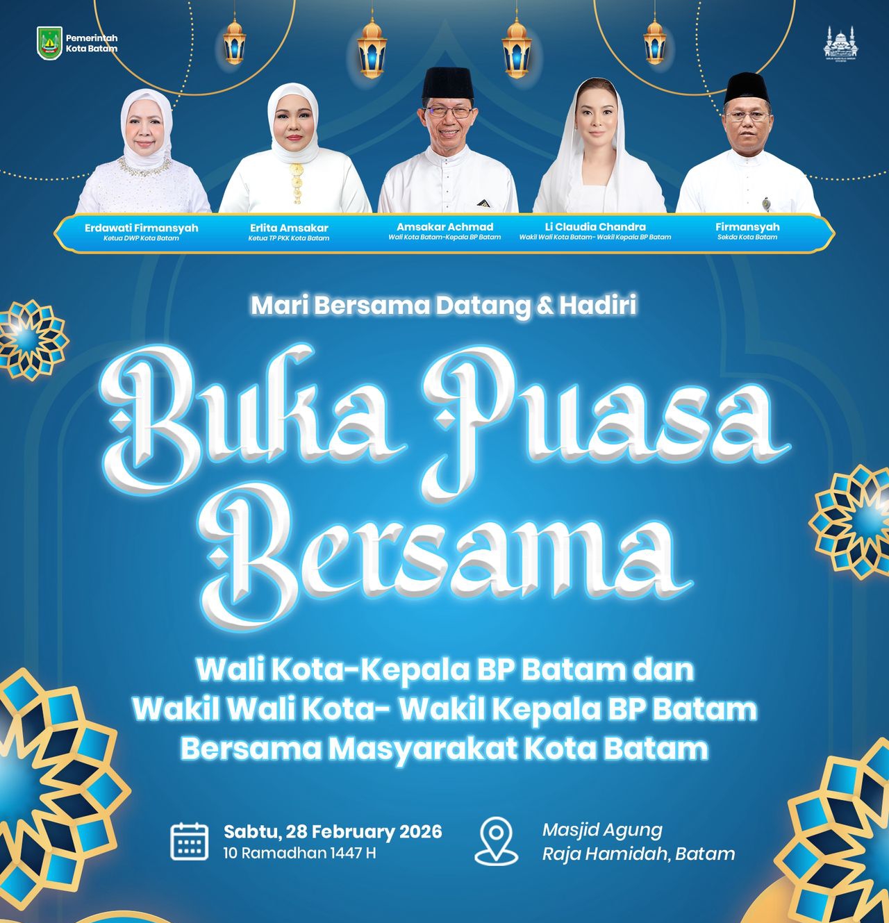 Batam / Berita / Gallery 26 Februari 2026 oleh mediacenter · Published 26 Februari 2026 Yuk Hadir! Bukber Bersama Pimpinan Kota Batam di Masjid Agung Raja Hamidah Pemerintah Kota Batam mengundang seluruh masyarakat untuk hadir dalam kegiatan Buka Puasa Bersama bersama Wali Kota Batam-Kepala BP...