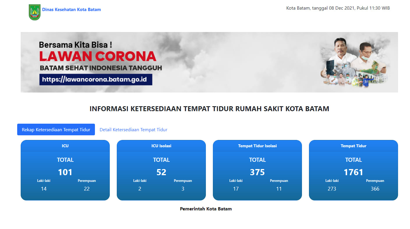 Berita / Kesehatan 8 Desember 2021 oleh mediacenter · Published 8 Desember 2021 Mudahkan Masyarakat, Pemko Batam Hadirkan ‘ Si Kamarrs’ Informasi Ketersediaan Tempat Tidur Rumah Sakit Media Center Batam – Pemerintah Kota (Pemko) Batam mengembangkan portal informasi ketersediaan tempat tidur rumah sakit Kota Batam....