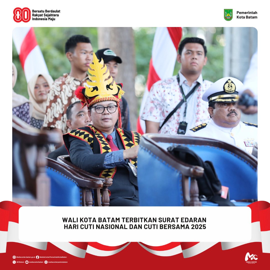 Batam / Berita / PEMKO BATAM 19 Agustus 2025 oleh mediacenter · Published 19 Agustus 2025 𝐖𝐚𝐥𝐢 𝐊𝐨𝐭𝐚 𝐁𝐚𝐭𝐚𝐦 𝐓𝐞𝐫𝐛𝐢𝐭𝐤𝐚𝐧 𝐒𝐮𝐫𝐚𝐭 𝐄𝐝𝐚𝐫𝐚𝐧 𝐇𝐚𝐫𝐢 𝐂𝐮𝐭𝐢 𝐍𝐚𝐬𝐢𝐨𝐧𝐚𝐥 𝐝𝐚𝐧 𝐂𝐮𝐭𝐢 𝐁𝐞𝐫𝐬𝐚𝐦𝐚 𝟐𝟎𝟐𝟓 𝐃𝐢𝐬𝐤𝐨𝐦𝐢𝐧𝐟𝐨 𝐁𝐚𝐭𝐚𝐦–Wali Kota Batam, Amsakar Achmad, mengeluarkan surat edaran tentang perubahan pertama hari libur nasional dan cuti bersama...