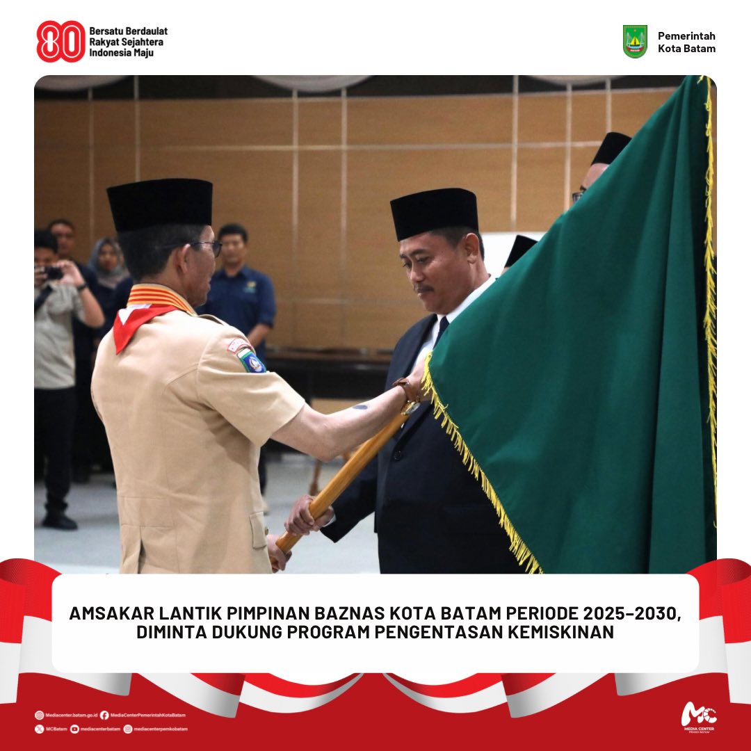 baznas / Berita / Walikota 19 Agustus 2025 oleh mediacenter · Published 19 Agustus 2025 𝐀𝐦𝐬𝐚𝐤𝐚𝐫 𝐋𝐚𝐧𝐭𝐢𝐤 𝐏𝐢𝐦𝐩𝐢𝐧𝐚𝐧 𝐁𝐀𝐙𝐍𝐀𝐒 𝐊𝐨𝐭𝐚 𝐁𝐚𝐭𝐚𝐦 𝐏𝐞𝐫𝐢𝐨𝐝𝐞 𝟐𝟎𝟐𝟓–𝟐𝟎𝟑𝟎, 𝐃𝐢𝐦𝐢𝐧𝐭𝐚 𝐃𝐮𝐤𝐮𝐧𝐠 𝐏𝐫𝐨𝐠𝐫𝐚𝐦 𝐏𝐞𝐧𝐠𝐞𝐧𝐭𝐚𝐬𝐚𝐧 𝐊𝐞𝐦𝐢𝐬𝐤𝐢𝐧𝐚𝐧 𝐃𝐢𝐬𝐤𝐨𝐦𝐢𝐧𝐟𝐨 𝐁𝐚𝐭𝐚𝐦 – Wali Kota Batam, Amsakar Achmad, melantik pimpinan Badan Amil Zakat Nasional (BAZNAS) Kota Batam periode...