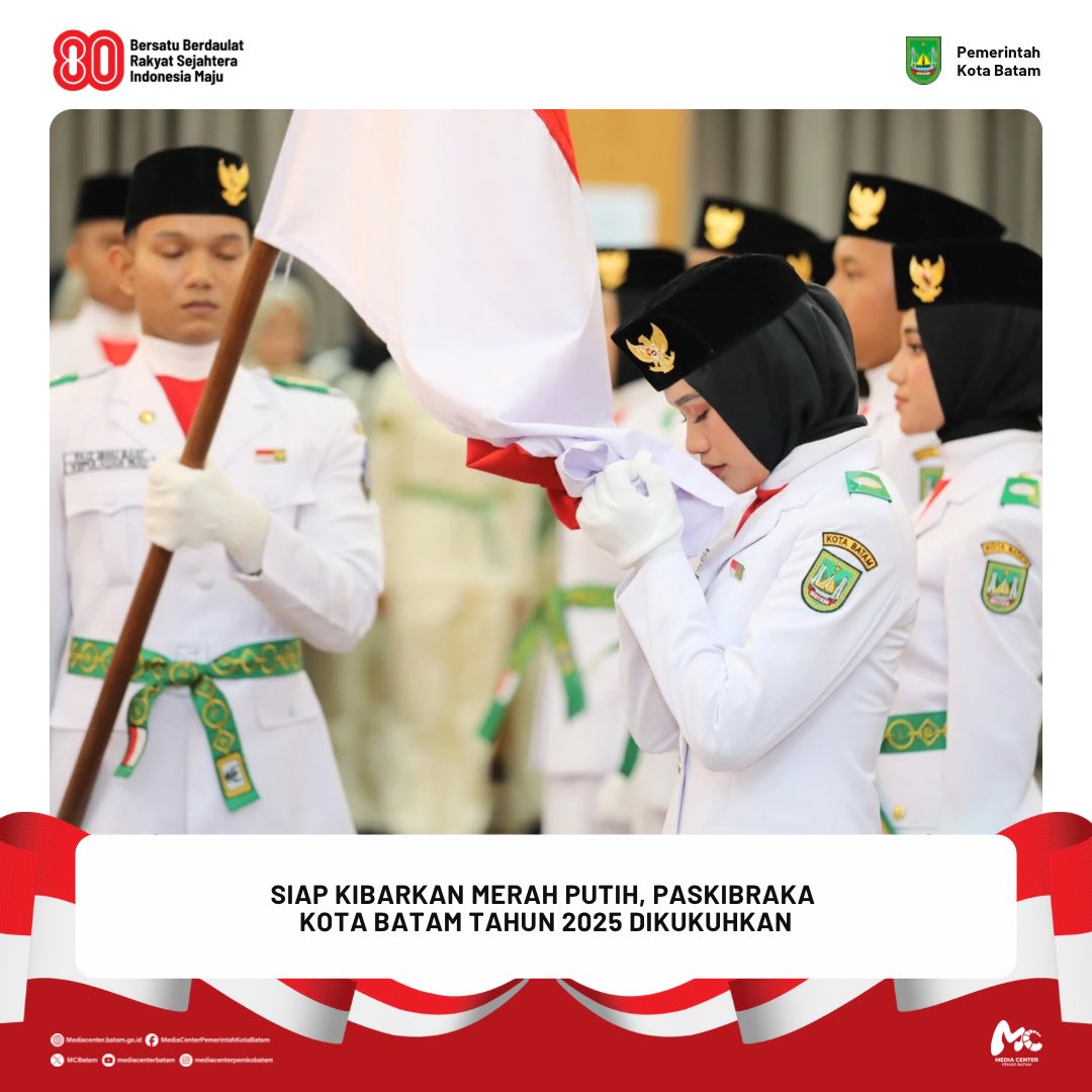 Berita / PENGUKUHAN / Walikota 16 Agustus 2025 oleh mediacenter · Published 16 Agustus 2025 𝐒𝐢𝐚𝐩 𝐊𝐢𝐛𝐚𝐫𝐤𝐚𝐧 𝐌𝐞𝐫𝐚𝐡 𝐏𝐮𝐭𝐢𝐡, 𝐏𝐚𝐬𝐤𝐢𝐛𝐫𝐚𝐤𝐚 𝐊𝐨𝐭𝐚 𝐁𝐚𝐭𝐚𝐦 𝐓𝐚𝐡𝐮𝐧 𝟐𝟎𝟐𝟓 𝐃𝐢𝐤𝐮𝐤𝐮𝐡𝐤𝐚𝐧 𝐃𝐢𝐬𝐤𝐨𝐦𝐢𝐧𝐟𝐨 𝐁𝐚𝐭𝐚𝐦- Wali Kota Batam, Amsakar Achmad, secara resmi mengukuhkan Pasukan Pengibar Bendera Pusaka (Paskibraka) Kota Batam Tahun...