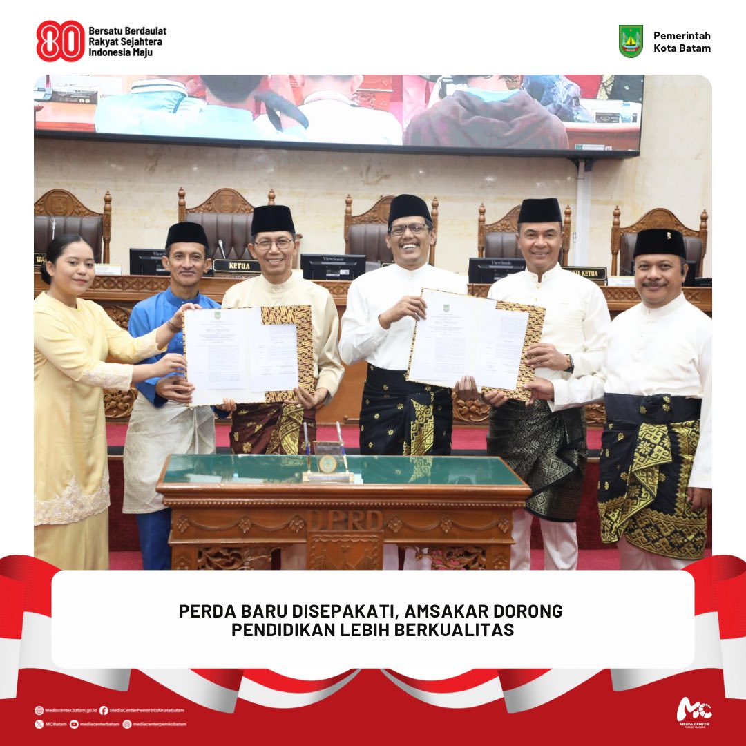 Batam / Berita / Walikota 16 Agustus 2025 oleh mediacenter · Published 16 Agustus 2025 𝐏𝐞𝐫𝐝𝐚 𝐁𝐚𝐫𝐮 𝐃𝐢𝐬𝐞𝐩𝐚𝐤𝐚𝐭𝐢, 𝐀𝐦𝐬𝐚𝐤𝐚𝐫 𝐃𝐨𝐫𝐨𝐧𝐠 𝐏𝐞𝐧𝐝𝐢𝐝𝐢𝐤𝐚𝐧 𝐋𝐞𝐛𝐢𝐡 𝐁𝐞𝐫𝐤𝐮𝐚𝐥𝐢𝐭𝐚𝐬 𝐃𝐢𝐬𝐤𝐨𝐦𝐢𝐧𝐟𝐨 𝐁𝐚𝐭𝐚𝐦 – Pemerintah Kota (Pemko) Batam bersama DPRD Kota Batam menyepakati Rancangan Peraturan Daerah (Ranperda) tentang Penyelenggaraan...