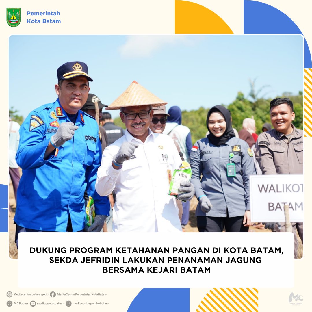 Batam / Berita / Sekda 28 Mei 2025 oleh mediacenter · Published 28 Mei 2025 𝐃𝐮𝐤𝐮𝐧𝐠 𝐏𝐫𝐨𝐠𝐫𝐚𝐦 𝐊𝐞𝐭𝐚𝐡𝐚𝐧𝐚𝐧 𝐏𝐚𝐧𝐠𝐚𝐧 𝐝𝐢 𝐊𝐨𝐭𝐚 𝐁𝐚𝐭𝐚𝐦, 𝐒𝐞𝐤𝐝𝐚 𝐉𝐞𝐟𝐫𝐢𝐝𝐢𝐧 𝐋𝐚𝐤𝐮𝐤𝐚𝐧 𝐏𝐞𝐧𝐚𝐧𝐚𝐦𝐚𝐧 𝐉𝐚𝐠𝐮𝐧𝐠 𝐁𝐞𝐫𝐬𝐚𝐦𝐚 𝐊𝐞𝐣𝐚𝐫𝐢 𝐁𝐚𝐭𝐚𝐦 𝐃𝐢𝐬𝐤𝐨𝐦𝐢𝐧𝐟𝐨 𝐁𝐚𝐭𝐚𝐦- Wali Kota Batam, Amsakar Achmad diwakili Sekretaris Daerah Kota Batam, Jefridin, M.Pd. menghadiri kegiatan penanaman jagung...